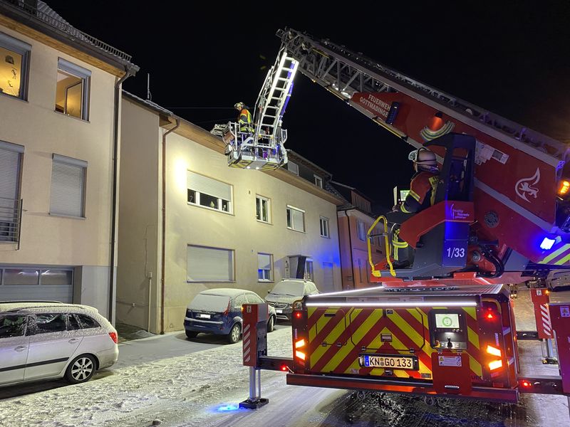 Zum ersten Einsatz im neuen Jahr 2026 wurde der "Brandmeister vom Dienst" nach Gailingen zu einer Drehleiterrettung alarmiert. Bei winterlichen Straßen rückte die DL(A)K 23/12) aus. In der Hauptstraße musste eine Person aus dem 2. Obergeschoss nach unten transportiert werden. Die Feuerwehr Gailingen organisierte die Logistik, so dass die Person schnell über die Krankentragehalterung nach unten gebracht, und dem Rettungsdienst übergeben wurde.